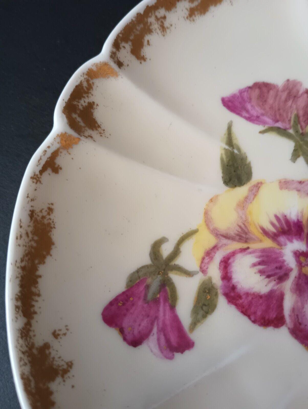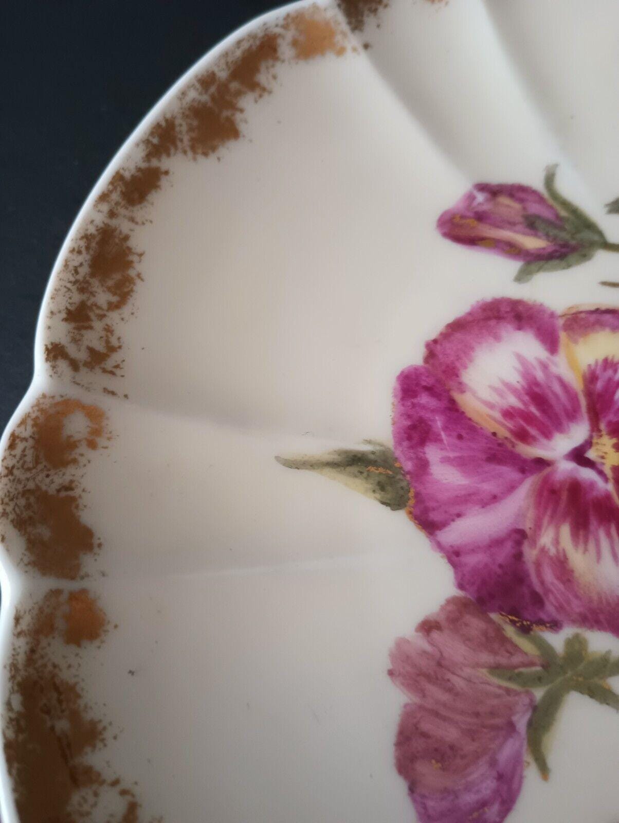 Plate Features Gold Trim and Pansies Design