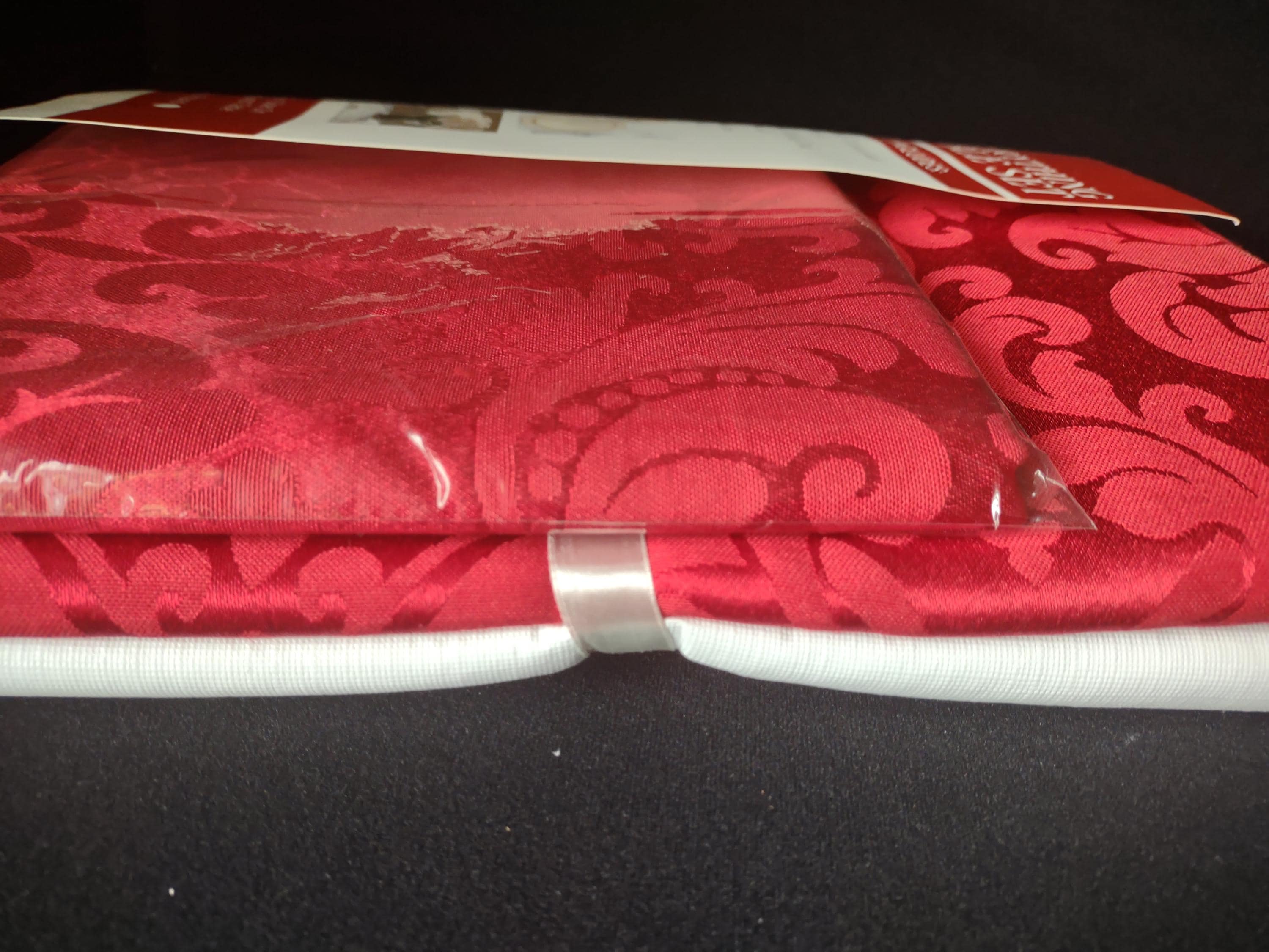 Red Table Set Round 70" Tablecloth Vinyl Table Pad 6 Napkins