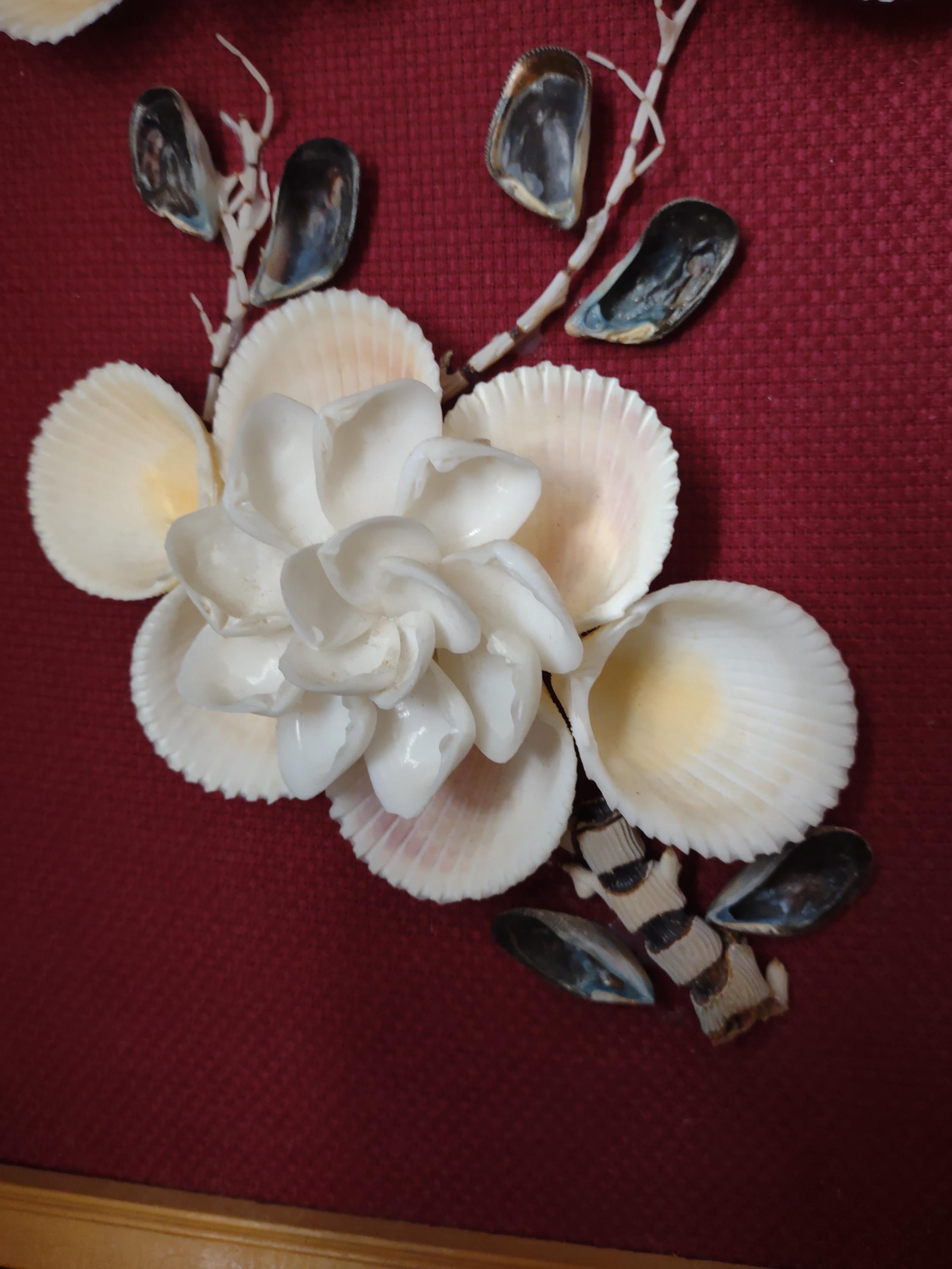 Vintage MCM Shell Picture Maroon 13" x 9"